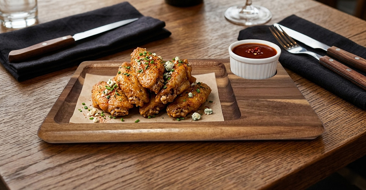 This rectangular serving board in dark wood features an integrated well for sauces or condiments, making it perfect for appetizers or sampler plates. The dark wood finish adds depth and visual interest to tabletop presentations. Built from durable hardwood, it’s designed for everyday restaurant service. Perfect for burgers, appetizers and more.